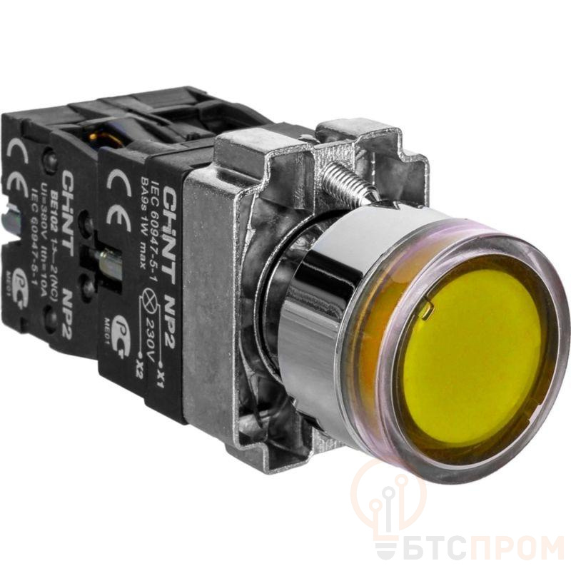 Кнопка управления NP2-BW1561 выступающая 1НО AC/DC230В (LED) IP40 (R) желт. CHINT 575779 фото в каталоге от BTSprom.by