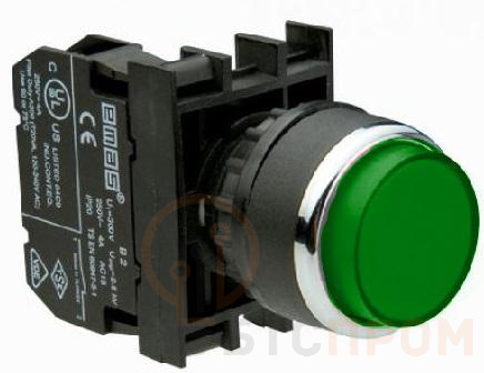 Ключевая особенность — нормально-разомкнутый контакт (1НО), который замыкает цепь только при нажатии. Корпус выполнен из прочных термостойких материалов, устойчивых к механическим воздействиям и агрессивным средам. Яркий зеленый цвет сигнализирует о функциях "Пуск" или "Включение".