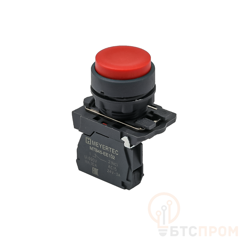 Модель имеет нормально-разомкнутый (1NС) контакт и оснащена выступающей универсальной кнопкой-грибком красного цвета, что делает ее идеальной для функций аварийного останова (стоп) или пуска в экстренных ситуациях. Устройство монтируется в круглое отверстие диаметром 22 мм и рассчитано на напряжение до 600 В.