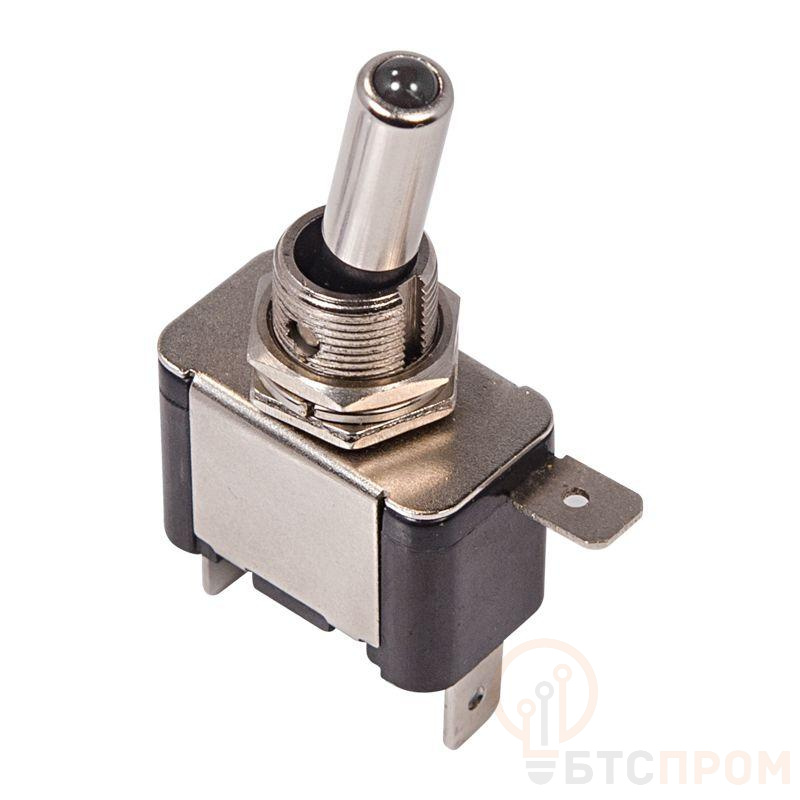 Тумблер 12V 20А (3c) ON-OFF однополюсный с синей LED подсветкой предназначен для коммутации электрических цепей напряжением 12В. Такая разновидность переключателей применяется на лицевых панелях в качестве комплектующих изделий различного электрооборудования (в измерительных приборах, блоках питания, электроустановках на различных производствах, легковых и грузовых автомобилях, поездах и многих других местах). Отличительной особенностью тумблера является металлический перекидной переключатель, принцип действия которого основан на его перемещении в одну из позиций. Для переключения в нужное положение требуется приложить некоторые усилия. Монтаж осуществляется без применения винтов на плоских панелях толщиной от 0.8мм до 4мм. Подключение контактов осуществляется с помощью плоских клемм, либо с помощью пайки. Основные характеристики: Номинальное напряжение: 12В; Номинальный ток: 20A; Тип переключения: ON-OFF; Количество контактных групп: 1; Количество контактов в контактной группе: 2; Фиксация положений: да; Индикатор коммутационных положений: синий LED; Установочный диаметр: 12.2мм; Рабочая температура: от -25? до +85?; Степень защиты (IP): IP30; Ресурс: 10 000 циклов. Данный переключатель устанавливается на различные технические устройства, требующие высокой надежности в работе.