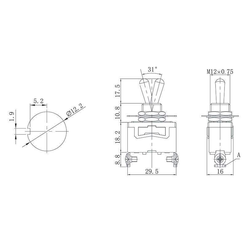 Тумблер 250V 15А (2c) ON-OFF однополюсный (KN-101) предназначен для коммутации электрических цепей переменного тока напряжением до 250В. Такая разновидность переключателей применяется на лицевых панелях в качестве комплектующих изделий различного электрооборудования (в измерительных приборах, блоках питания, электроустановках на различных производствах, легковых и грузовых автомобилях, поездах и многих других местах). Отличительной особенностью тумблера является перекидной переключатель, принцип действия которого основан на его перемещении в одну из позиций. Для переключения в нужное положение требуется приложить некоторые усилия. Монтаж осуществляется без применения винтов на плоских панелях толщиной от 0.8мм до 4мм. Подключение контактов осуществляется с помощью винтов. Основные характеристики: Номинальное напряжение: 250В; Номинальный ток: 15А 250V (AC); Тип переключения: ON-OFF; Количество контактных групп: 1; Количество контактов в контактной группе: 2; Фиксация положений: да; Индикатор коммутационных положений: отсутствует; Установочный диаметр: 12.2мм; Рабочая температура: от -25? до +85?; Ресурс: 10 000 циклов. Данный переключатель устанавливается на различные технические устройства, требующие высокой надежности в работе.