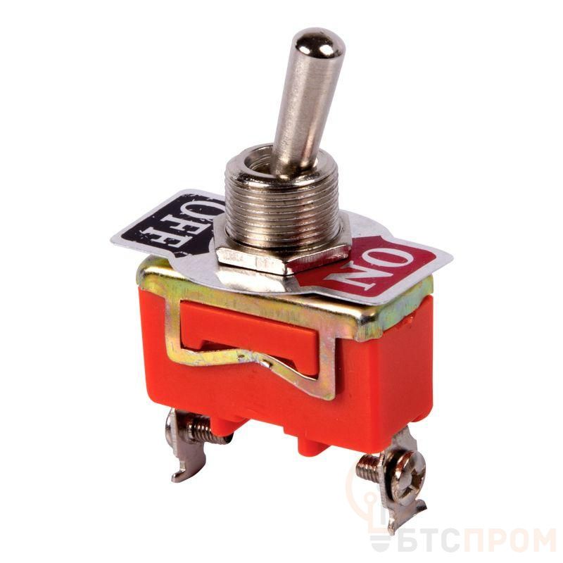 Тумблер 250V 15А (2c) ON-OFF однополюсный предназначен для коммутации электрических цепей переменного тока напряжением до 250В. Такая разновидность переключателей применяется на лицевых панелях в качестве комплектующих изделий различного электрооборудования (в измерительных приборах, блоках питания, электроустановках на различных производствах, легковых и грузовых автомобилях, поездах и многих других местах). Отличительной особенностью тумблера является перекидной переключатель, принцип действия которого основан на его перемещении в одну из позиций. Для переключения в нужное положение требуется приложить некоторые усилия. Монтаж осуществляется без применения винтов на плоских панелях толщиной от 0.8мм до 4мм. Подключение контактов осуществляется с помощью винтов. Основные характеристики: Номинальное напряжение: 250В; Номинальный ток: 15А 250V (AC); Контактное сопротивление: не более 50 мОм Тип переключения: ON-OFF; Количество контактных групп: 1; Количество контактов в контактной группе: 2; Фиксация положений: да; Индикатор коммутационных положений: отсутствует; Установочный диаметр: 12.2мм; Рабочая температура: от -25? до +85?; Степень защиты (IP): IP30 Ресурс: 10 000 циклов. Данный переключатель устанавливается на различные технические устройства, требующие высокой надежности в работе.