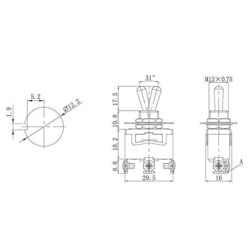 Тумблер 250V 15А (3c) ON-OFF-ON однополюсный предназначен для коммутации электрических цепей переменного тока напряжением до 250В. Такая разновидность переключателей применяется на лицевых панелях в качестве комплектующих изделий различного электрооборудования (в измерительных приборах, блоках питания, электроустановках на различных производствах, легковых и грузовых автомобилях, поездах и многих других местах). Отличительной особенностью тумблера является перекидной переключатель, принцип действия которого основан на его перемещении в одну из позиций. Для переключения в нужное положение требуется приложить некоторые усилия. Монтаж осуществляется без применения винтов на плоских панелях толщиной от 0.8мм до 4мм. Подключение контактов осуществляется с помощью винтов. Основные характеристики: Номинальное напряжение: 250В; Номинальный ток: 15A; Тип переключения: ON-OFF-ON; Количество контактных групп: 1; Количество контактов в контактной группе: 3; Фиксация положений: да; Индикатор коммутационных положений: отсутствует; Установочный диаметр: 12.2мм; Рабочая температура: от -25? до +85?; Степень защиты (IP): IP30; Ресурс: 10 000 циклов. Данный переключатель устанавливается на различные технические устройства, требующие высокой надежности в работе.