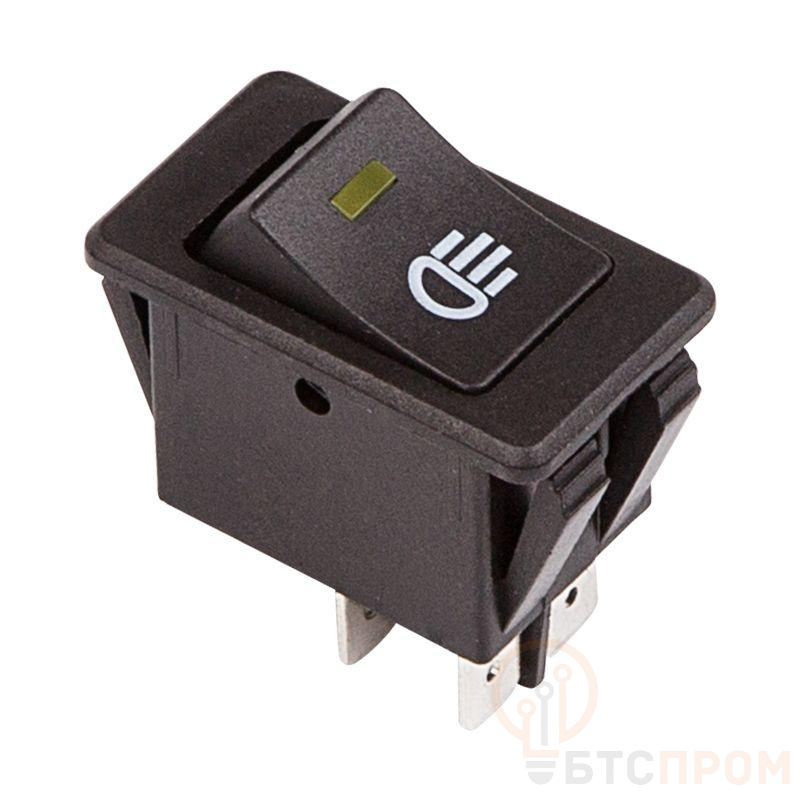 Клавишный переключатель ON-OFF предназначен для коммутации электрических цепей. Используется для включения и выключения различного электрооборудования в автотранспорте: в легковых и грузовых автомобилях, автобусах. Имеет два положения: принцип работы основан на перемещении клавиши в одну из позиций. Для переключения требуется приложить некоторое усилие. Выключатель оснащен желтой LED-подсветкой, которая помогает отслеживать рабочее состояние прибора и делает выключатель заметным в темноте. Монтаж осуществляется без применения винтов на плоских панелях толщиной от 0,8 до 3 мм. Контакты подключаются либо плоской клеммой, либо с помощью пайки. Контактное сопротивление: не более 50 мОм.