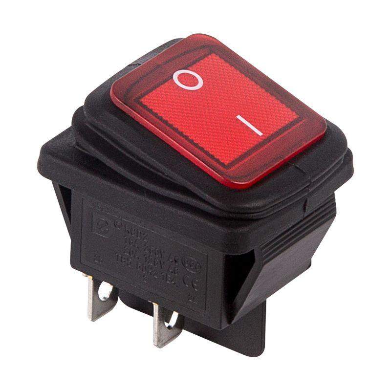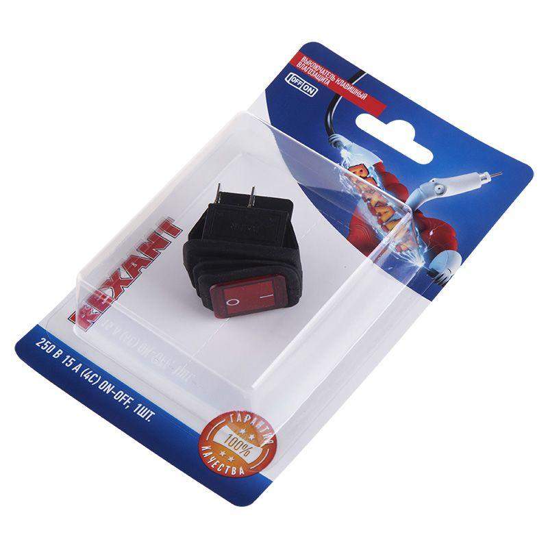 Выключатель клавишный 250В 15А (4с) ON-OFF красн. с подсветкой ВЛАГОЗАЩИТА (RWB-507) блист. Rexant 06-0307-C