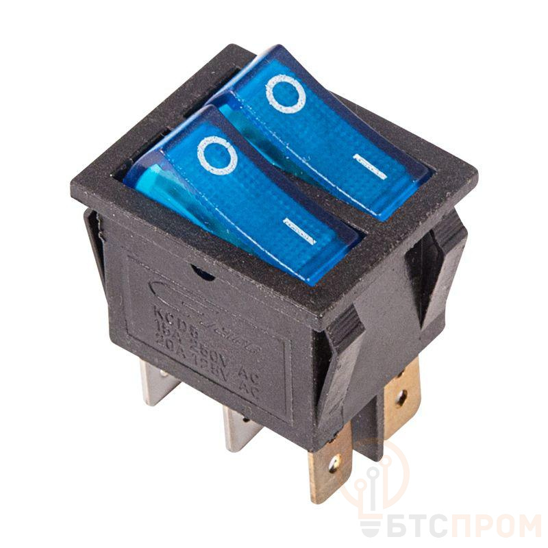Двойной клавишный выключатель ON-OFF предназначен для коммутации электрических цепей. Используется для включения и выключения различного электрооборудования: сетевых фильтров и удлинителей, звукового оборудования, электроустановок на производстве и в автомобиле. Имеет два положения: принцип работы основан на перемещении клавиши в одну из позиций. Для переключения требуется приложить некоторое усилие. Две клавиши позволяют раздельно коммутировать контактные группы. Клавиши синего цвета оснащены подсветкой, которая помогает отслеживать рабочее состояние прибора и делает выключатель заметным в темноте. Монтаж осуществляется без применения винтов на плоских панелях толщиной от 0,8 до 3 мм. Контакты подключаются либо плоской клеммой, либо с помощью пайки. Предельное напряжение: 1500 В (АС) не более 1 минуты. Контактное сопротивление: не более 35 мОм.
