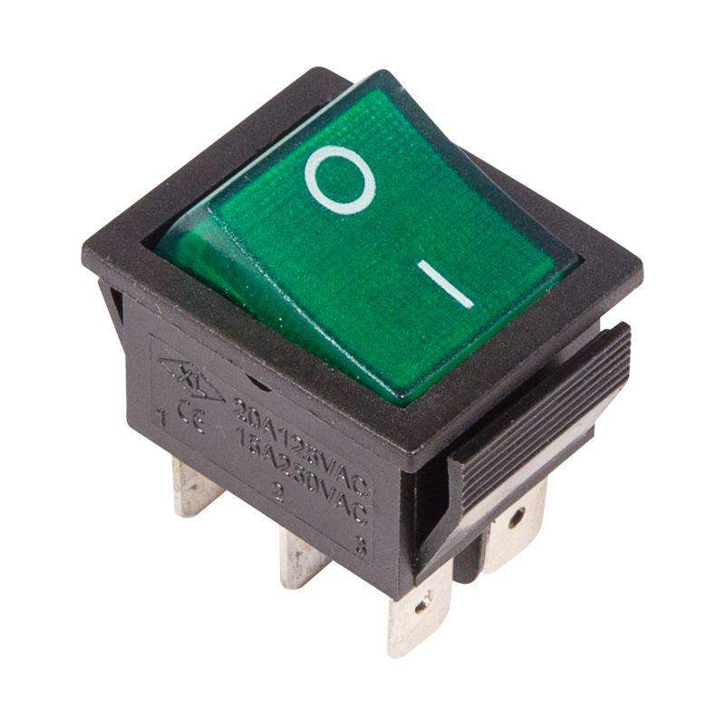 Клавишный переключатель ON-ON предназначен для коммутации электрических цепей. Используется для переключения между двумя активными состояниями в различном электрооборудовании: сетевых фильтрах и удлинителях, звуковом оборудовании, электроустановках на производстве и в автомобиле. Имеет два положения: принцип работы основан на перемещении клавиши в одну из позиций. Для переключения требуется приложить некоторое усилие. Клавиша зеленого цвета оснащена подсветкой, которая помогает отслеживать рабочее состояние прибора и делает выключатель заметным в темноте. Монтаж осуществляется без применения винтов на плоских панелях толщиной от 0,8 до 3 мм. Контакты подключаются либо плоской клеммой, либо с помощью пайки. Предельное напряжение: 1500 В (АС) не более 1 минуты. Контактное сопротивление: не более 35 мОм.