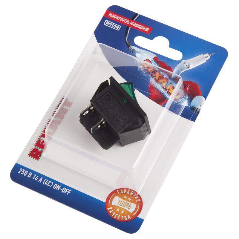Выключатель клавишный 250В 16А (4с) ON-OFF зел. с подсветкой (RWB-502 SC-767 IRS-201-1) блист. Rexant 06-0304-B