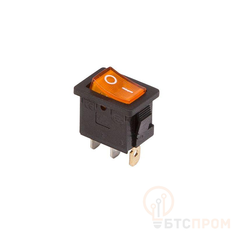 Выключатель клавишный 250V 6А (3с) ON-OFF желтый с подсветкой Mini предназначен для коммутации электрических цепей переменного тока напряжением до 250В. Клавишные (Рокерные) выключатели применяются в качестве комплектующих изделий различного электрооборудования (в сетевых фильтрах и удлинителях, аудио-оборудовании, блоках питания, электроустановках на различных производствах, автомобилях, и многих других местах). Такой клавишный переключатель имеет два положения. Принцип действия основан на перемещении клавиши в одну из позиций. Для переключения в нужное положение требуется приложить некоторые усилия на клавишу. Монтаж осуществляется без применения винтов на плоских панелях толщиной от 0.8мм до 3мм. Подключение контактов осуществляется плоской клеммой, либо с помощью пайки. Основные характеристики: Номинальное напряжение: 250В; Предельное напряжение: 1500VАС не более 1 минуты; Номинальный ток: 6A (250VAC); Контактное сопротивление: не более 35 мОм; Тип переключения: ON-OFF; Количество контактных групп: 1; Количество контактов в контактной группе: 3; Фиксация положений: да; Индикатор коммутационных положений: желтый; Рабочая температура: от -25? до +85?; Ресурс: 10 000 циклов.