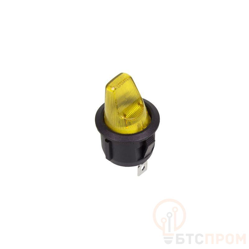 Выключатель клавишный круглый 12V 16А (3с) ON-OFF желтый с подсветкой предназначен для коммутации электрических цепей напряжением 12В. Клавишные (Рокерные) выключатели применяются в качестве комплектующих изделий различного электрооборудования (аудио-оборудовании, блоках питания, электроустановках на различных производствах, автомобилях, и многих других местах). Такой переключатель имеет два положения и специфическую форму клавиша-тумблер. Принцип действия основан на перемещении клавиши в одну из позиций. Для переключения в нужное положение требуется приложить некоторые усилия на клавишу. Монтаж осуществляется без применения винтов на плоских панелях толщиной от 0.8мм до 3мм. Подключение контактов осуществляется плоской клеммой, либо с помощью пайки. Основные характеристики: Номинальное напряжение: 12В; Номинальный ток: 16A; Контактное сопротивление: не более 35 мОм; Тип переключения: ON-OFF; Количество контактных групп: 1; Количество контактов в контактной группе: 3; Фиксация положений: да; Индикатор коммутационных положений: желтый; Рабочая температура: от -25? до +85?; Ресурс: 10 000 циклов.