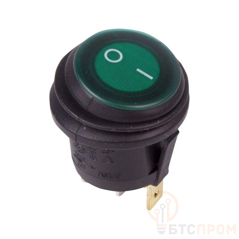 Круглый клавишный переключатель ON-OFF предназначен для коммутации электрических цепей. Используется для включения и выключения различного электрооборудования: сетевых фильтров и удлинителей, звукового оборудования, электроустановок на производстве и в автомобиле. Имеет два положения: принцип работы основан на перемещении клавиши в одну из позиций. Для переключения требуется приложить некоторое усилие. Клавиша покрыта защитной оболочкой, которая предотвращает попадание пыли и влаги внутрь выключателя. Клавиша зеленого цвета оснащена подсветкой, которая помогает отслеживать рабочее состояние прибора и делает выключатель заметным в темноте. Монтаж осуществляется без применения винтов на плоских панелях толщиной от 0,8 до 3 мм. Контакты подключаются либо плоской клеммой, либо с помощью пайки. Предельное напряжение: 1500 В (АС) не более 1 минуты. Контактное сопротивление: не более 35 мОм.