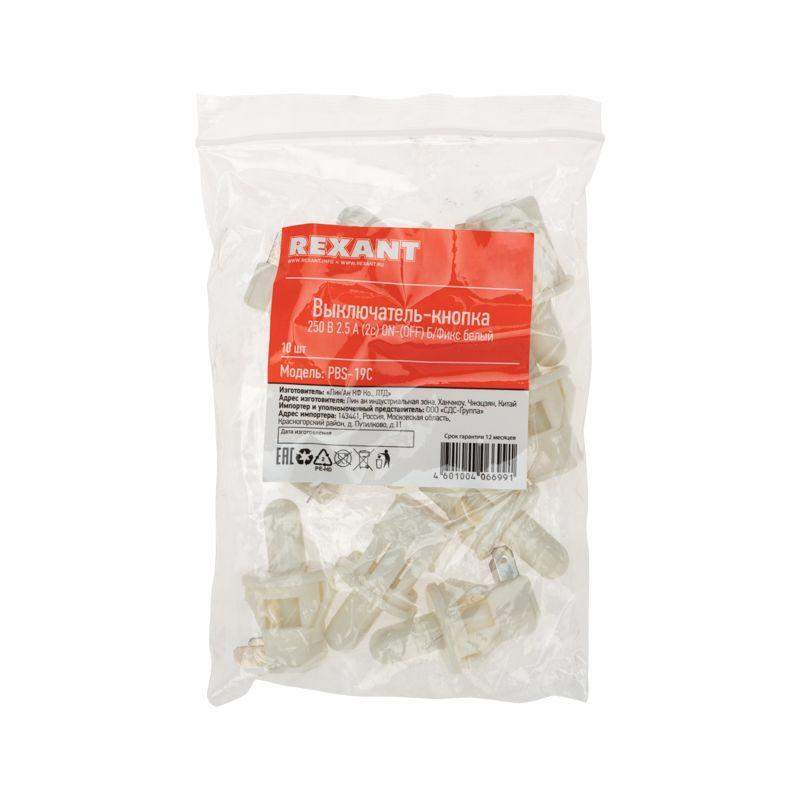 Выключатель-кнопка 250В 2.5А (2с) ON-(OFF) Б/Фикс бел. (PBS-19С) (мебельная) Rexant 36-3020 фото в каталоге от BTSprom.by