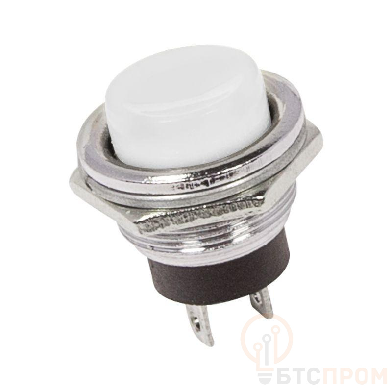 Выключатель-кнопка металл 220V 2А (2с) OFF-(ON) O16.2 белая предназначена для коммутации электрических цепей переменного тока напряжением до 250В путем включения-выключения питающего провода. Кнопки применяются в качестве комплектующих изделий различного электрооборудования (в аудио системах, блоках питания, электроустановках на различных производствах, автомобилях, и многих других местах). Разнообразные цветовые варианты исполнения позволяют эффективно комплектовать панели управления. Изделие состоит из двух основных частей - лицевой части (головки) и контактной, и имеет пружинный возвратный механизм. Металлическое исполнение обеспечит долговечное функционирование коммутатора. Монтаж осуществляется без применения винтов на плоских панелях толщиной от 0.5мм до 3мм. Подключение проводов осуществляется с помощью пайки. Основные характеристики: Номинальное напряжение: 250В; Номинальный ток: 2A 250V (AC); Тип переключения: OFF-(ON); Количество контактных групп: 1; Количество контактов в контактной группе: 2; Фиксация положений: отсутствует; Индикатор коммутационных положений: отсутствует; Установочный диаметр: 16.2мм; Рабочая температура: от -25? до +85?; Степень защиты (IP): IP30; Ресурс: 10 000 циклов. Преимуществами использования данного изделия является надежность, быстрота и удобство монтажа.