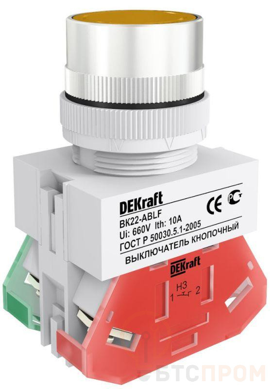 Выключатель кнопочный серии ВК-22 Dekraft; с потайным толкателем; желтый; без индикации; ном.ток 10 А; установка - на панели или двери; степень защиты - IP54; подключение - винтовыми зажимами. Выключатели кнопочные ВК-22 предназначены для коммутации электрических цепей и индикации состояния электрических цепей. Применяются в сетях переменного тока частотой 50/60 Гц с напряжением до 660В. Могут устанавливаться на подвижных и неподвижных частях стационарных установок.