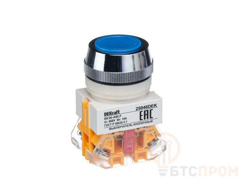 Выключатель кнопочный серии ВК-30 Dekraft; с потайным толкателем; синий; без индикации; ном.ток 10 А; установка - на панели или двери; степень защиты - IP54; подключение - винтовыми зажимами. Выключатели кнопочные ВК-30 предназначены для коммутации электрических цепей и индикации состояния электрических цепей. Применяются в сетях переменного тока частотой 50/60 Гц с напряжением до 660В. Могут устанавливаться на подвижных и неподвижных частях стационарных установок.