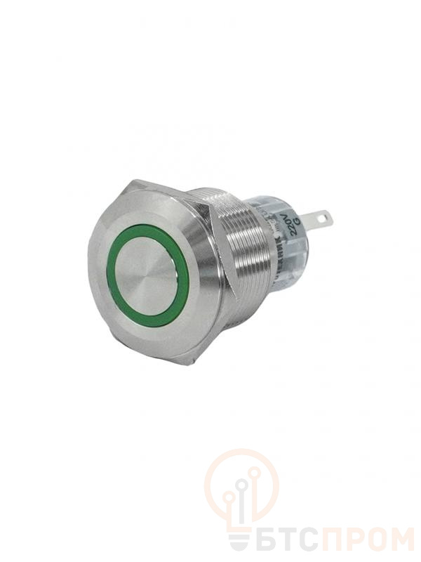 Выключатель кнопочный GQ22-L-11E/G/220V/S 1НО+1НЗ цилиндр с подсветкой 220В AC/DC d22мм IP65 метал. зел. Электротехник ET020093