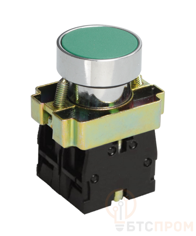 LAY5-ВА35, зелёный, 1НО+1НЗ, цилиндр, хром, без подсветки, d22мм, выключатель кнопочный (ЭТ)