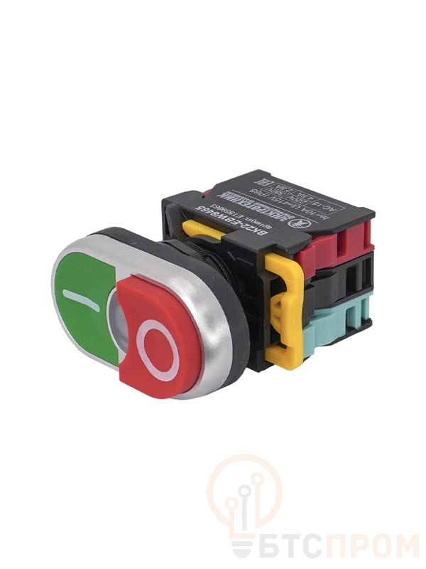 Устройство имеет сдвоенную конструкцию с одной нормально разомкнутой (1НО) и одной нормально замкнутой (1НЗ) контактной группой. Кнопки оснащены четкими символами "I" (включено) и "O" (выключено), а также независимой подсветкой зеленого и красного цвета для визуального контроля статуса оборудования даже в условиях плохой освещенности. Номинальное напряжение — 220В. Корпус выполнен в зелено-красной цветовой гамме. Этот выключатель предназначен для монтажа в электрощиты, станки, пульты управления и другое промышленное оборудование.
