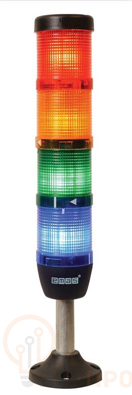 Сигнальные колонны EMAS служит для световой и звукосветовой сигнализации состояния оборудования, подачи разрешительных или запрещающих световых сигналов и предупреждения персонала об аварийных и чрезвычайных ситуациях связанных с безопасной работой оборудования. В ассортименте сигнальные колонны с лампочками накаливания, светодиодными лампами, светодиодными лампами стробоскоп (мигающие). Светосигнальные колонны имеют модульную конструкцию, устанавливаются без инструментов и в непрерывном режиме предоставляют сведения о текущих режимах работы, наличии сбоев и возможных критических состояний. Сигнальная колонна может обеспечиваться акустическим сигнальным устройством (зумер) 90 Дб. Теплостоикие Два типа наружнего деаметра 50 мм -70 мм Поликарбонатная линза Удобные способы соединения Различные питающие напряжения Корпус устойчев к механическим воздействиям Опция зуммера Электрическая стойкость 200 000 операции (минимальное значение) Рабочая температура -25 °C /+70 °C Стандарт TS EN 60947-5-1