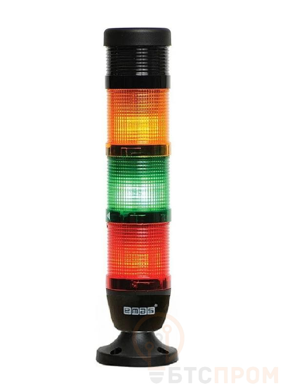 Сигнальные колонны EMAS служит для световой и звукосветовой сигнализации состояния оборудования, подачи разрешительных или запрещающих световых сигналов и предупреждения персонала об аварийных и чрезвычайных ситуациях связанных с безопасной работой оборудования. В ассортименте сигнальные колонны с лампочками накаливания, светодиодными лампами, светодиодными лампами стробоскоп (мигающие). Светосигнальные колонны имеют модульную конструкцию, устанавливаются без инструментов и в непрерывном режиме предоставляют сведения о текущих режимах работы, наличии сбоев и возможных критических состояний. Сигнальная колонна может обеспечиваться акустическим сигнальным устройством (зумер) 90 Дб. Два типа наружнего деаметра 50 мм -70 мм Поликарбонатная линза Удобные способы соединения Различные питающие напряжения Корпус устойчев к механическим воздействиям Опция зуммера Электрическая стойкость 200 000 операции (минимальное значение) Рабочая температура -25 °C /+70 °C Стандарт TS EN 60947-5-1
