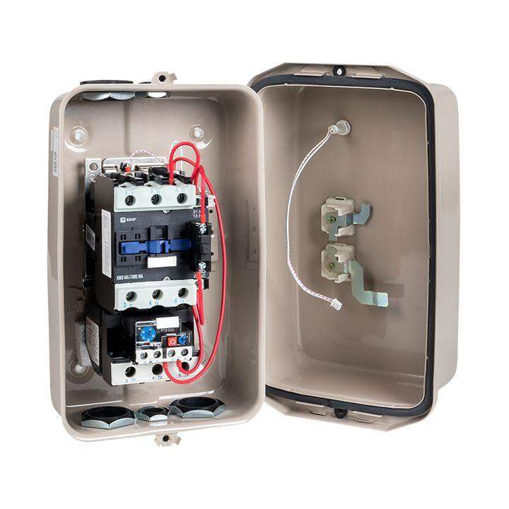 –Пускатель магнитный КМЭ 50А 230В с РТЭ и индикатором PROxima в корп. IP65 EKF ctrp-r-50-230v-led