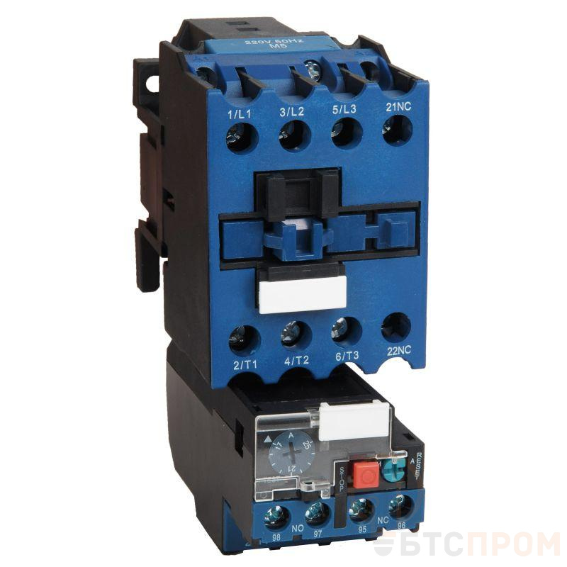 Контактор с катушкой управления переменным током напряжением 220 В на номинальный ток 25 А.
