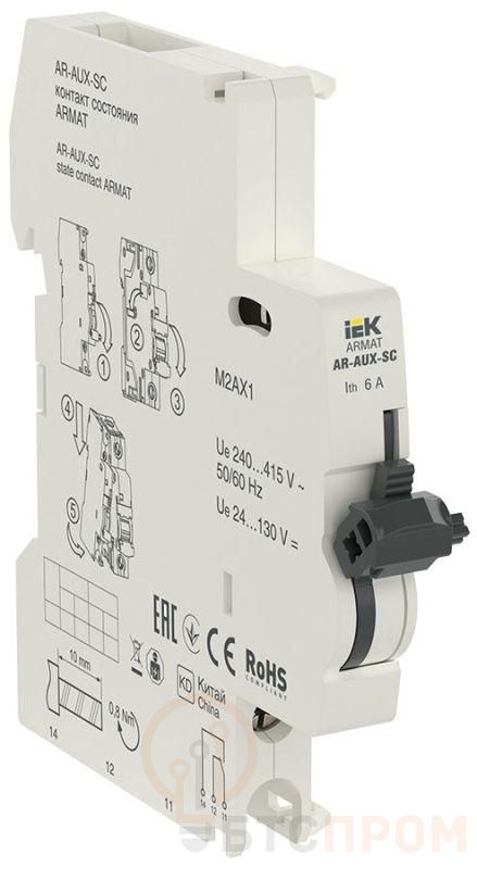 Контакт состояния ARMAT AUX-SC служит для получения информации о состоянии автоматических выключателей M06N и M10N в системах автоматизации технологических процессов или защиты конкретных объектов. ARMAT AUX-SC выполняет функцию контакта состояния автоматического выключателя: включен – выключен. Переключение контактов ARMAT AUX-SC происходит, даже если рукоятка управления выключателя удерживается во взведенном положении.