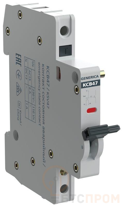 Контакт состояния аварийный КСВ47 на DIN-рейку сигнализирует о срабатывании автоматического выключателя от сверхтока.