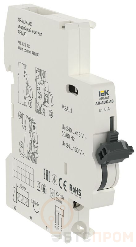 Аварийный контакт ARMAT AUX-AC служит для получения информации о состоянии автоматических выключателей ARMAT cерий M06N и M10N в системах автоматизации технологических процессов или защиты конкретных объектов. ARMAT AUX-AC выполняет функцию сигнализации положения механизма взвода выключателей ARMAT cерий M06N или M10N. После установки модуля в зацепление с механизмом выключателей ARMAT cерий M06N или M10N при первом взведении рукоятки управления происходит переключение контактов, остающихся в таком положении и при ручном отключении ВА. Переключение контактов произойдет только при срабатывании выключателя от сверхтоков (перегрузки или короткого замыкания).