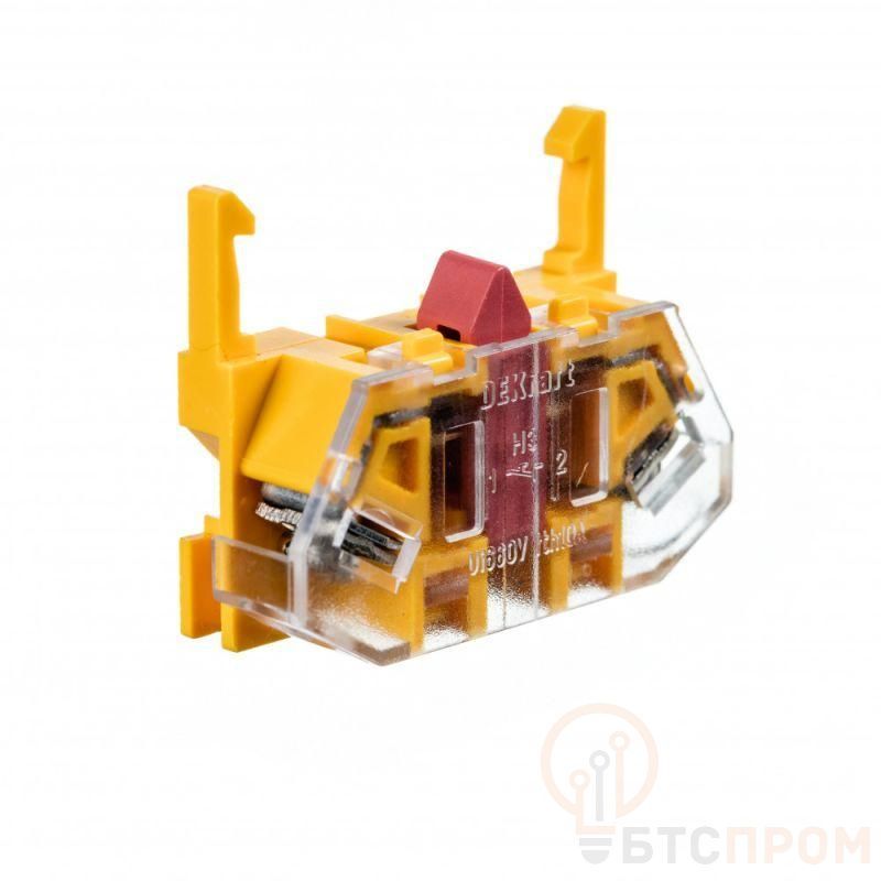 Контакт дополнительный серии ДК-22 Dekraft; предназначен для кнопочных выключателей серий ВК-22, ВК-30 и переключателей серий ПЕ-22, ПЕ-30; исполнение – 1НЗ; цвет – красный. Контакт устанавливается на управляющий элемент с правой или с левой стороны. При установке нечетного количества дополнительных контактов на управляющий элемент с индикацией необходимо использовать адаптер АД22-А и соединитель АД22-С. При установке четного количества контактов используются только соединители АД22-С.
