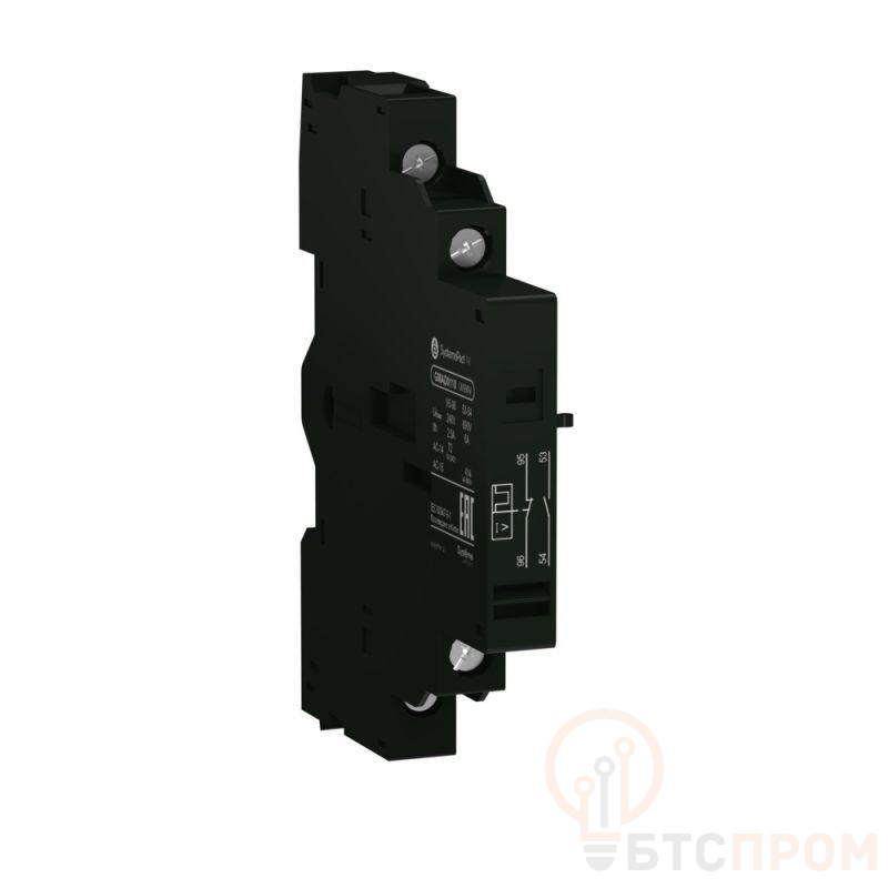 Дополнительный контакт мгновенного действия сигнализации состояния и аварийного отключения для автоматических выключателей серии SystemePact GM2, исполнение - 1НО (аварийный) + 1НЗ, монтаж – сбоку слева от выключателя. Дополнительные контакты применяются совместно с автоматическими выключателями и предназначены для увеличения количества вспомогательных контактов, использующихся в цепях сигнализации и управления.