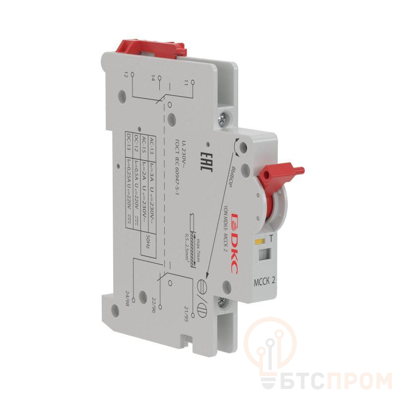 Аксессуар MD63-MCCK2, информирующий о состоянии главных контактов автоматического выключателя, также информирующий о срабатывании. Подходит для серии модульных выключателей MD63