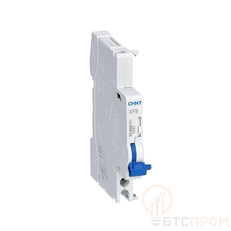 Вспомогательный контакт серии XF9 предназначен для передачи информации о состоянии ВКЛ/ОТКЛ автоматических выключателей и выключателей дифференциального тока. Состояние дополнительных контактов XF9 не зависит от причины срабатывания и всегда повторяет состояние силовых контактов выключателя. Кнопка «тест» позволяет тестировать цепь, подключенную к дополнительному контакту, не отключая выключатель. Контакт серии XF9 устанавливается с левой стороны выключателя и прищелкивается к нему. Основные характеристики: Количество контактов – 1НО+1НЗ Категория применения – AС12, DC12 Механическая износостойкость – 10000 циклов В/О Электрическая износостойкость – 6500 циклов В/О Степень загрязнения – 2 Степень защиты – IP20 Ширина – 9 мм Монтаж – на симметричную DIN-рейку 35 мм Вспомогательный контакт серии XF9 может применяться с выключателями следующих серий NB1L, NB1L-40, NB1L-63, NB310L, NBH8LE-40, NXBLE-32, NXBLE-40, NXBLE-63, NXBLE-63Y, NXBLE-125, NB1-63H.