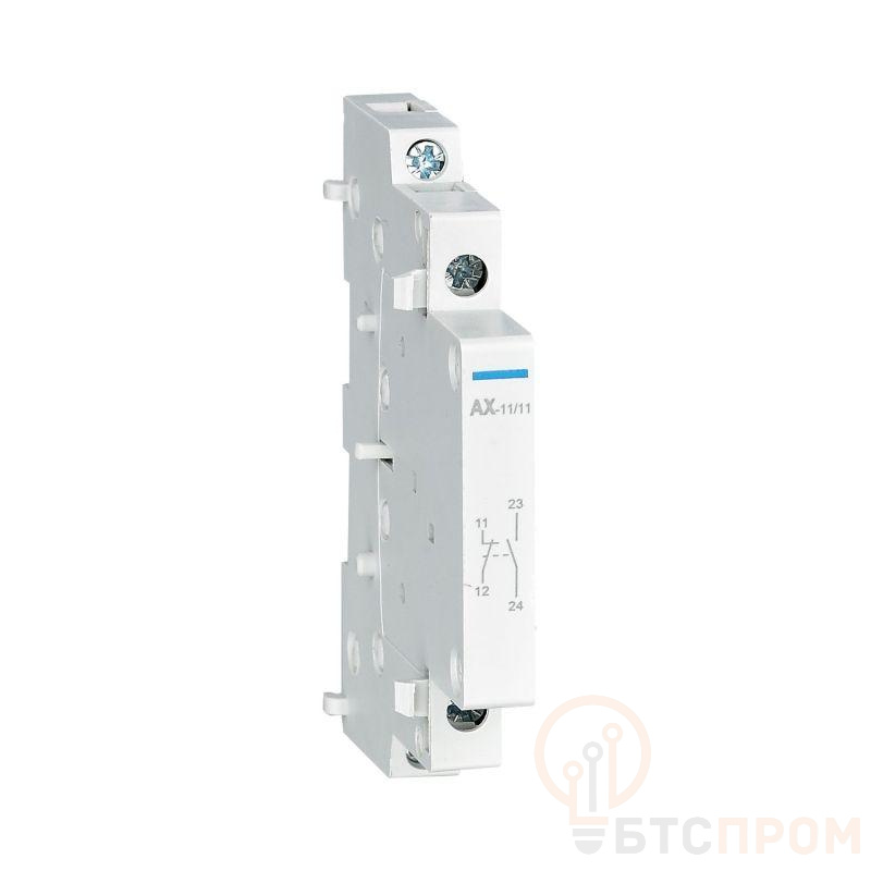 Блок дополнительных контактов серии AX-X1 предназначен для применения с модульными контакторами серии NCH8-M и расширения функциональных возможностей контактора. Контакты блока AX-X1 меняют свое состояние при подаче или снятии напряжение на катушке управления контактора. Основные характеристики: Количество контактов – 1НО+1НЗ Степень загрязнения – 2 Степень защиты – IP20 Ширина – 9 мм Монтаж – на симметричную DIN-рейку 35 мм