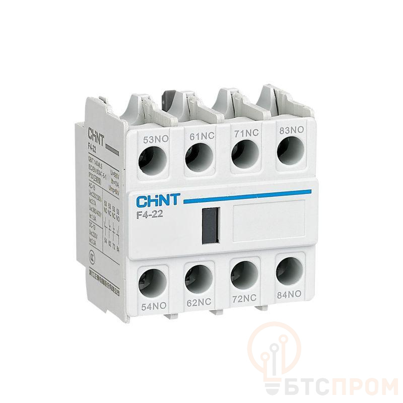 Вспомогательный контакт F4-31 — это надежный дополнительный модуль для контакторов серии NC1, NC2 и NC8 (R) от ведущего производителя CHINT. Данный аксессуар предназначен для расширения функциональности основного контактора, добавляя 4 нормально разомкнутых (замыкающих) контакта. Модель F4-31 монтируется на боковую или фронтальную часть корпуса контактора, обеспечивая компактность и удобство монтажа.