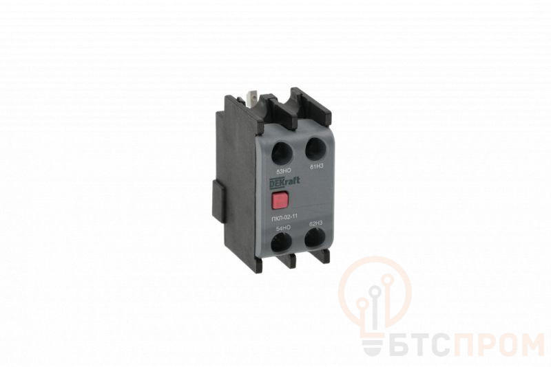 Приставка контактная серии ПКЛ-02-20 для контакторов КМ-102 Dekraft; кол-во контактов - 2НО; ном.ток 10 А; ном.напряжение до 690 В; установка с лицевой стороны; степень защиты IP20. Приставки контактные предназначены для увеличения количества вспомогательных контактов контактора. Контактные приставки механически соединяются с контакторами и фиксируются при помощи защелки. Приставка подходит для использования с контакторами других производителей.