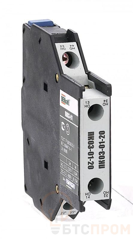 Приставка контактная серии ПК-03-01 для контакторов КМ-103 Dekraft; кол-во контактов - 2НО; ном.ток 10 А; ном.напряжение до 690 В; установка с лицевой стороны; степень защиты IP20. Приставки контактные предназначены для увеличения количества вспомогательных контактов контактора. Приставки боковой установки ПК-03-01 являются эксклюзивом и позволяют значительно сэкономить на глубине шкафа, который будет стоить дешевле.
