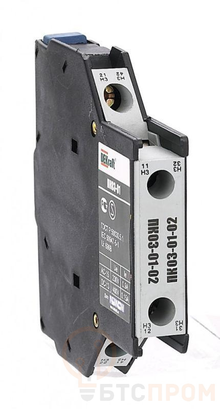 Приставка контактная серии ПК-03-01 для контакторов КМ-103 Dekraft; кол-во контактов - 2НЗ; ном.ток 10 А; ном.напряжение до 690 В; установка с лицевой стороны; степень защиты IP20. Приставки контактные предназначены для увеличения количества вспомогательных контактов контактора. Приставки боковой установки ПК-03-01 являются эксклюзивом и позволяют значительно сэкономить на глубине шкафа, который будет стоить дешевле.
