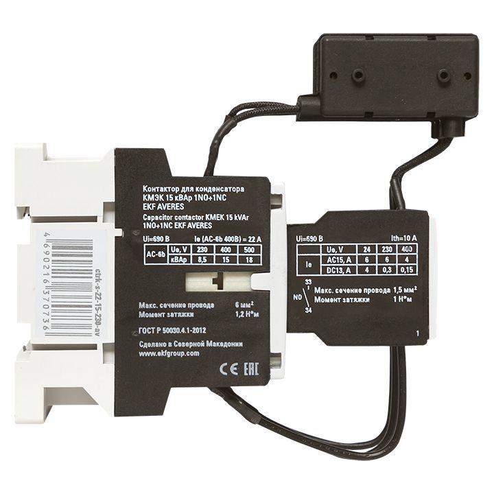 Контактор для конденсатора КМЭК 15квар 230В 1NО+1NC AVERES EKF ctrk-s-22-15-230-av фото в каталоге от BTSprom.by