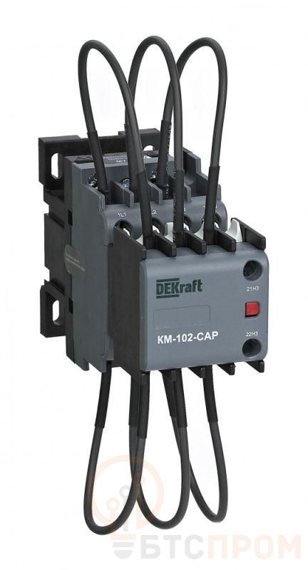Контактор конденсаторный серии КМ-102-CAP Dekraft предназначен для замыкания и размыкания электрических цепей батарей конденсаторов; 3P; номинальная мощность 20 кВАр; напряжение управления 110 В пер.тока; доп.контакты 2НЗ; установка на стандартную DIN-рейку. Контакторы КМ-102-CAP предназначены для использования в установках и щитах компенсации реактивной мощности (КРМ) централизовано на объектах или непосредственно у потребителей с низким коэффициентом мощности.