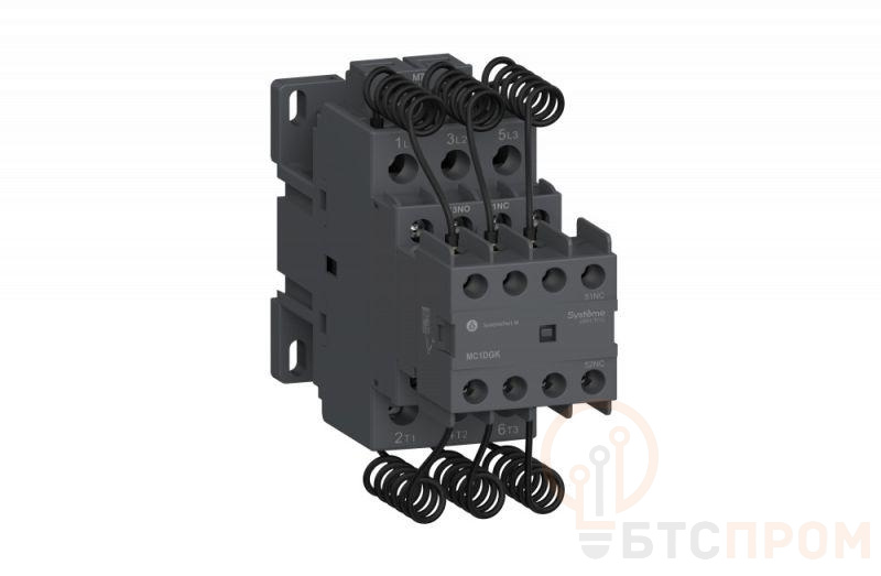 Контактор серии SystemePact MC1D для конденсаторных батарей, номинальная мощность – 16.7 кВАр, 3P, 1НО+2НЗ, напряжение управления – 24 В пер.тока, категория применения – AC-6b, монтаж – на DIN-рейке или на монтажной плате с помощью винтовых зажимов. Контакторы серии SystemePact M MC1DE…WK предназначены для коммутации трехфазных одно- и многоступенчатых конденсаторных батарей, оснащены блоком контактов предварительного срабатывания и гасящих резисторов, ограничивающих величину тока до 60In.