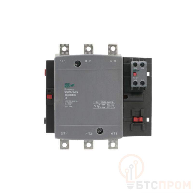 Контактор серии КМ-102 Dekraft; 3P; номинальный ток - 115 А (AC3, AC4); напряжение управления 110 В пер.тока; доп.контакты 1НО+1НЗ; установка на монтажную плату. Контакторы КМ-102 предназначены для пуска и останова асинхронных двигателей, для коммутации осветительных сетей, в сетях напряжением до 690 В пер.тока. Дополнительные защитные крышки исключают попадание пыли внутрь контактора и обеспечивают защиту от случайного прикосновения.