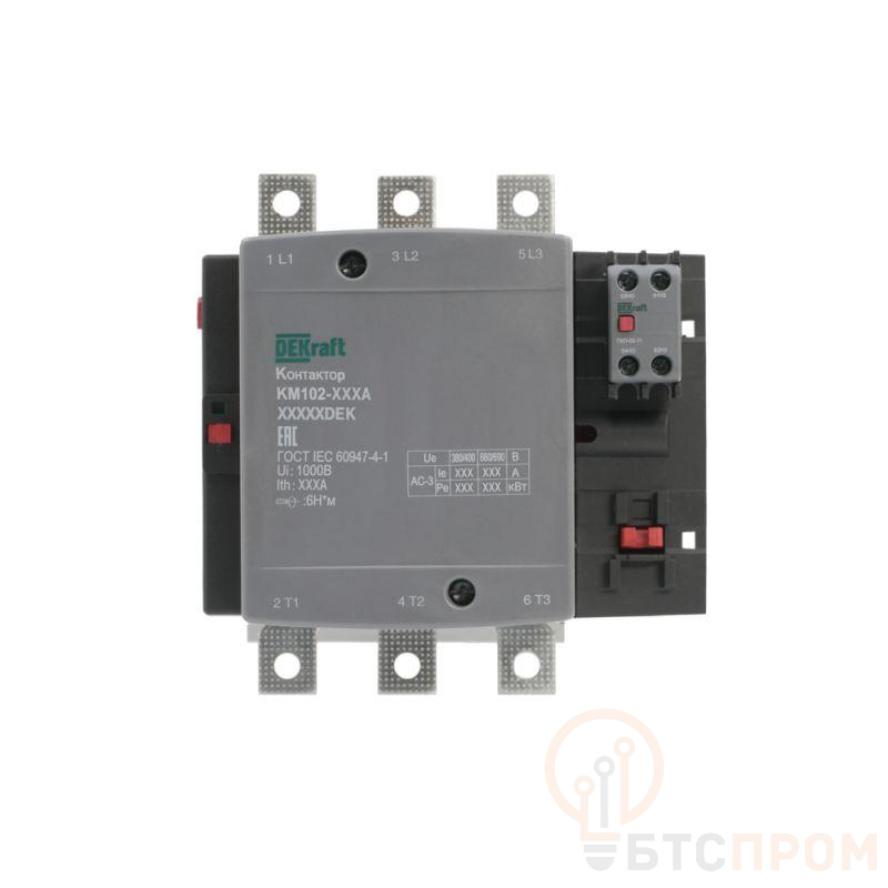 Контактор серии КМ-102 Dekraft; 3P; номинальный ток - 185 А (AC3, AC4); напряжение управления 400 В пер.тока; доп.контакты 1НО+1НЗ; установка на монтажную плату. Контакторы КМ-102 предназначены для пуска и останова асинхронных двигателей, для коммутации осветительных сетей, в сетях напряжением до 690 В пер.тока. Дополнительные защитные крышки исключают попадание пыли внутрь контактора и обеспечивают защиту от случайного прикосновения.