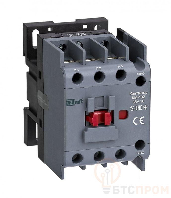 Контактор серии КМ-102 Dekraft; 3P; номинальный ток 38 А (AC3); напряжение управления 24 В пер.тока; доп.контакты 1НО+1НЗ; установка на стандартную DIN-рейку. Контакторы КМ-102 предназначены для пуска и останова асинхронных двигателей, для коммутации различных нагрузок в сетях напряжением до 690 В пер.тока. Дополнительные защитные крышки исключают попадание пыли внутрь контактора и обеспечивают защиту от случайного прикосновения.