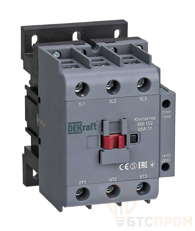 Контактор серии КМ-102 Dekraft; 3P; номинальный ток - 95 А (AC3, AC4); напряжение управления 110 В пер.тока; доп.контакты 1НО+1НЗ; установка на стандартную DIN-рейку. Контакторы КМ-102 предназначены для пуска и останова асинхронных двигателей, для коммутации осветительных сетей и конденсаторных батарей в сетях напряжением до 690 В пер.тока. Дополнительные защитные крышки исключают попадание пыли внутрь контактора и обеспечивают защиту от случайного прикосновения.