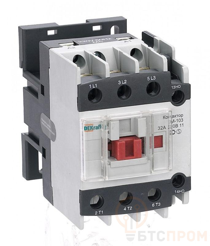 Контактор серии КМ-103 Dekraft; 3P; номинальный ток 32 А (AC3); напряжение управления 110 В пер.тока; доп.контакты 1НО+1НЗ; установка на стандартную DIN-рейку. Контакторы КМ-103 предназначены для пуска и останова асинхронных двигателей, для коммутации различных нагрузок в сетях напряжением до 690 В пер.тока. Дополнительные защитные крышки исключают попадание пыли внутрь контактора и обеспечивают защиту от случайного прикосновения.