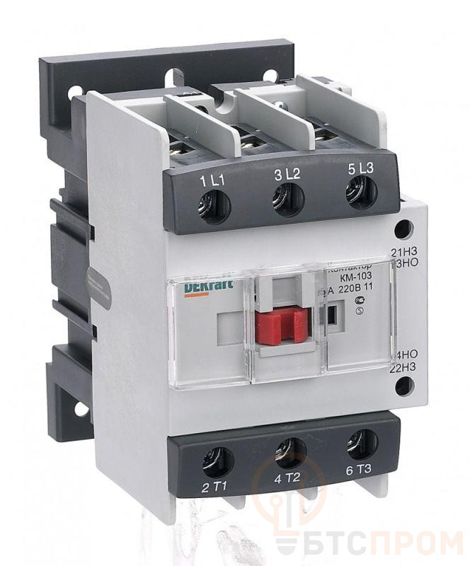 Контактор серии КМ-103 Dekraft; 3P; номинальный ток 80 А (AC3); напряжение управления 380 В пер.тока; доп.контакты 1НО+1НЗ; установка на стандартную DIN-рейку. Контакторы КМ-103 предназначены для пуска и останова асинхронных двигателей, для коммутации различных нагрузок в сетях напряжением до 690 В пер.тока. Дополнительные защитные крышки исключают попадание пыли внутрь контактора и обеспечивают защиту от случайного прикосновения.