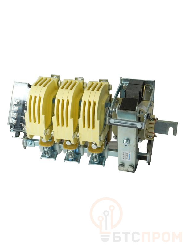 Контакторы электромагнитные переменного тока серии КТ-5000 открытого исполнения с естественным воздушным охлаждением предназначены для включения и отключения приёмников электрической энергии на номинальное напряжение до 660 В переменного тока частотой 50 Гц. * Надёжная конструкция, проверенная временем; * Возможность применения в различных отраслях; * Контакты с металлокерамическими накладками на основе серебра обладают лучшей электропроводимостью и защитой от окисления; * Закрытый блок вспомогательных контактов обеспечивает дополнительную безопасность персонала при техническом обслуживании; * Конструкция электромагнита обеспечивает надёжное замыкание с минимальным нагревом магнитопровода и низким уровнем шума.
