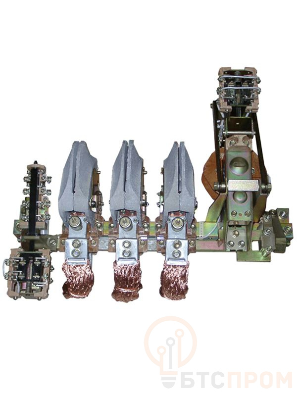 Контактор КТ-6053/2 У3 — это трехполюсный электромагнитный аппарат, предназначенный для коммутации силовых цепей постоянного и переменного тока. Номинальный ток главных цепей составляет 630 А при напряжении до 380 В. Модель оснащена тремя нормально разомкнутыми (3НО) и тремя нормально замкнутыми (3НЗ) блок-контактами, что обеспечивает гибкость в построении схем управления.