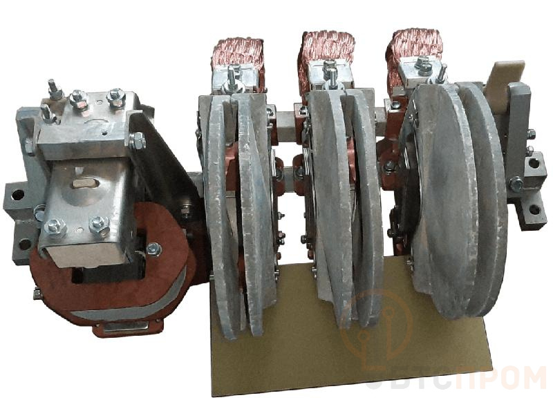 Контактор КТ-6063 от ЧЭАЗ — это мощный трехполюсный электромагнитный аппарат, предназначенный для коммутации силовых цепей переменного тока. Номинальный ток составляет 1000 А при категории применения АС-3 для управления асинхронными электродвигателями с короткозамкнутым ротором на напряжение до 380 В. Модель предназначена для установки на монтажную плиту, что обеспечивает удобный монтаж и надежную фиксацию в составе электрощитового оборудования.